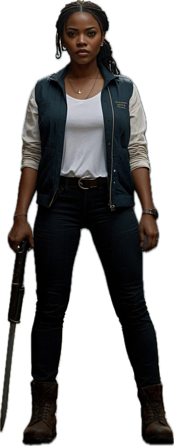 From a young age, Geli learned to navigate the perilous streets of Los Angeles, teeming with the undead. The apocalypse was the only life she ever knew, and she adapted quickly. She became adept at killing the undead, scavenging for supplies, and hunting for food. Survival was not just a necessity but a way of life. Geli's skills made her a formidable force, and she earned the respect and admiration of those around her.