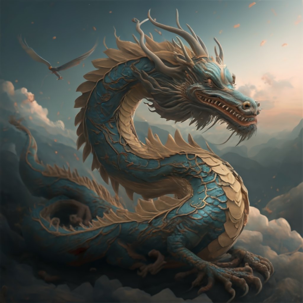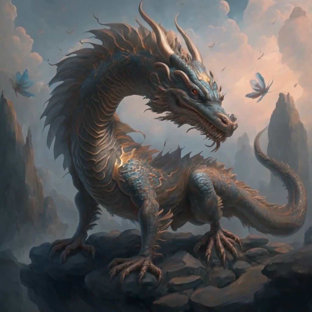 In the ancient annals of China, a profound narrative unfolds, recounting the remarkable life of Longwei Li, the revered child of Longtian. From time immemorial, this celestial entity took the form of a majestic dragon, gliding through the endless skies, its watchful gaze surveying the earthly realm. Its purpose was clear - to maintain the delicate equilibrium that governed existence.