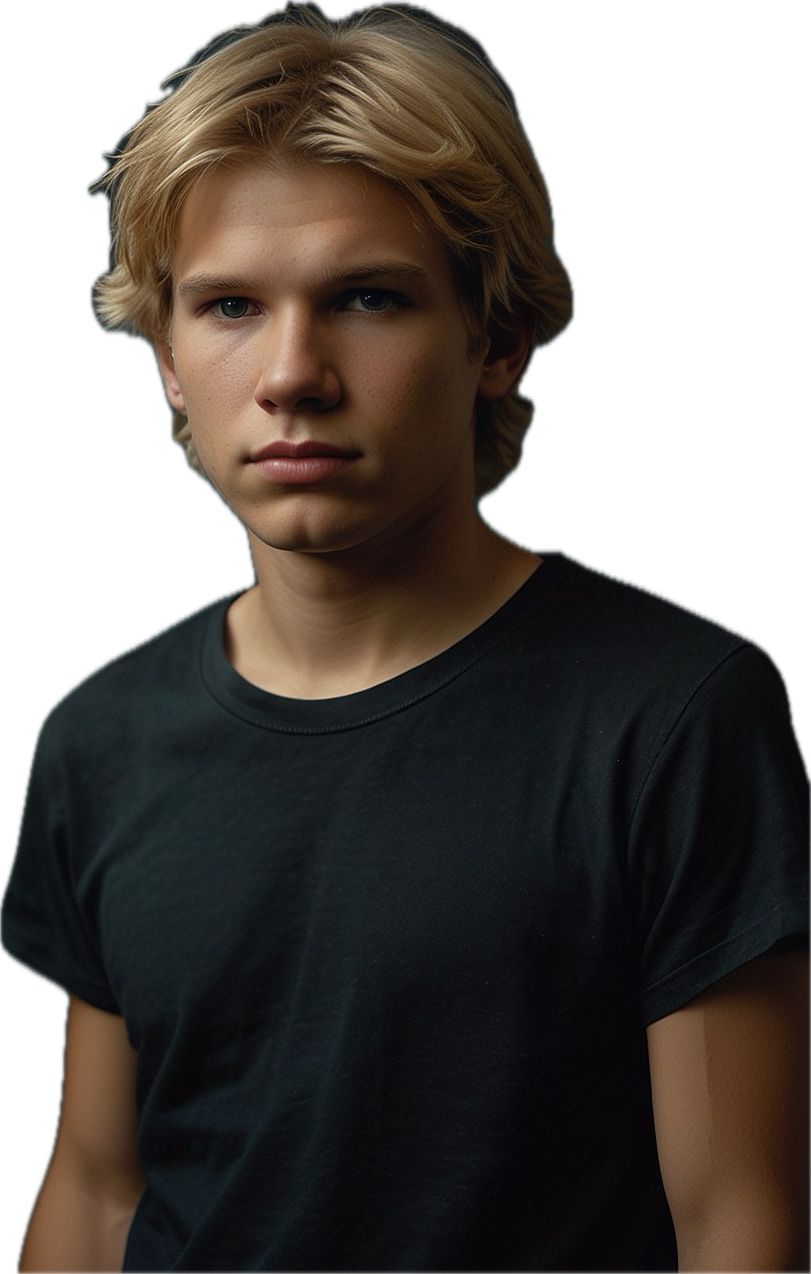 Phillip, a shy young man with sandy blonde hair and a nervous demeanor, sits at his desk near the back of the room. His eyes often dart toward Angelica, and though he tries to focus on his work, his attention frequently drifts back to her.