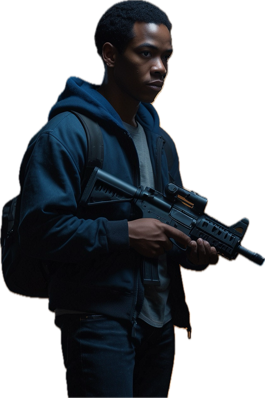 Notable Features: Youthful face, curly afro, intense gaze